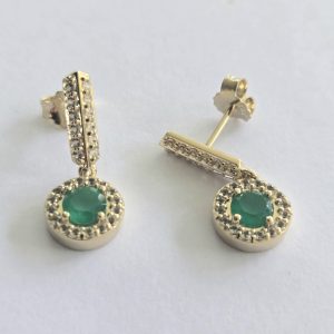 UNIQUE – Sterling Silver GP Green Onyx & CZ Stud Earrings