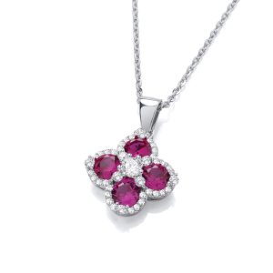 Cavendish French Silver Ruby CZ Vintage Clover Necklace