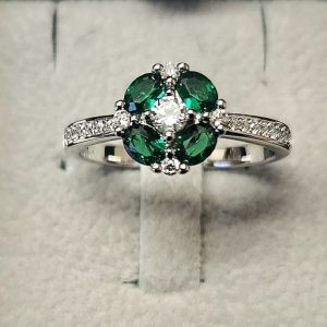 Cavendish French Silver Emerald CZ Vintage Clover Ring