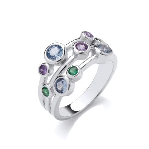 Silver Rainbow Cubic Zirconia Bubble Ring