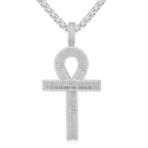 Silver Ank Style Baguette CZ Set Cross