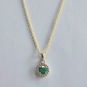 UNIQUE – Sterling Silver GP Green Onyx & CZ Necklet