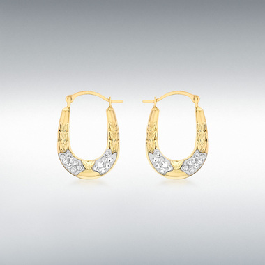 9 Carat yellow gold crystalique oval creole earrings. Width:12mm. Height:17mm