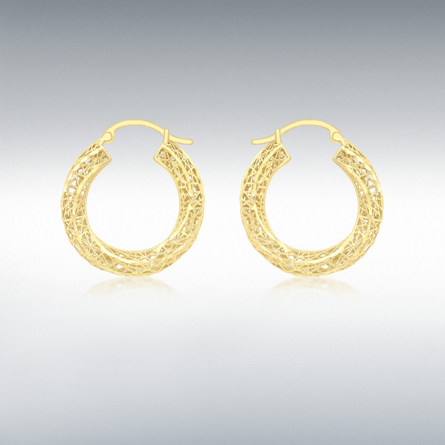 9ct Yellow Gold Diamond Cut Mesh Creole Earrings. Diameter: 22mm