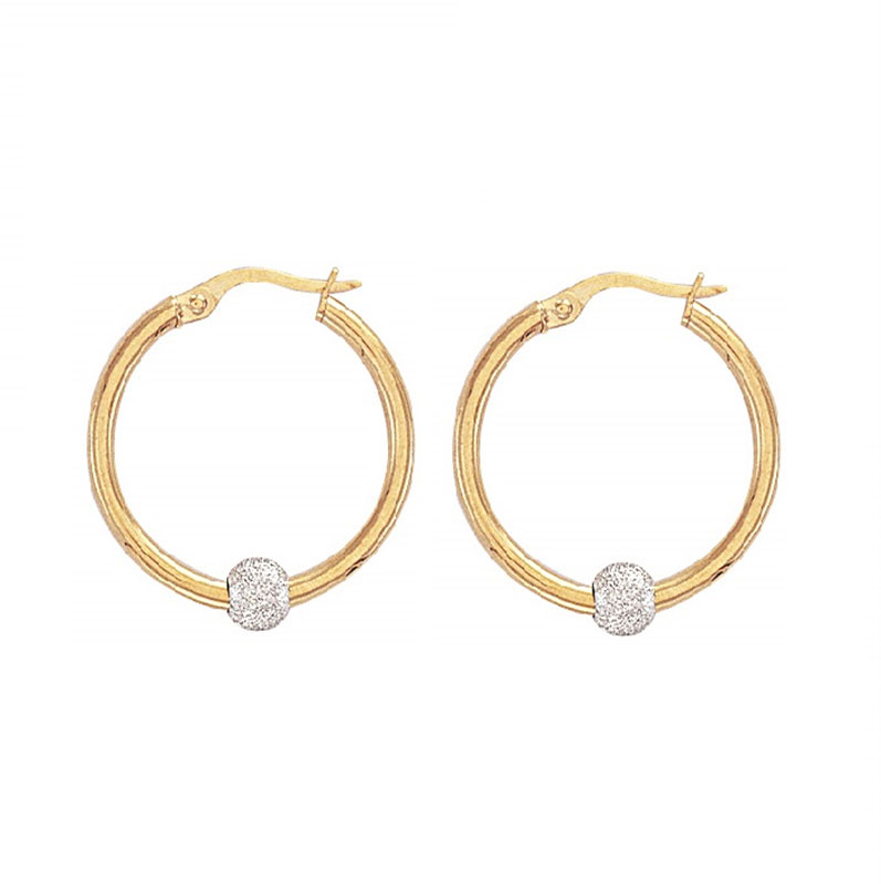 A stunning pair of earrings featuring plain hoops and white rhodiumed glitter balls to create a dazzling effect. For pierced ears only. Height: 23.5mm Depth: 2mm