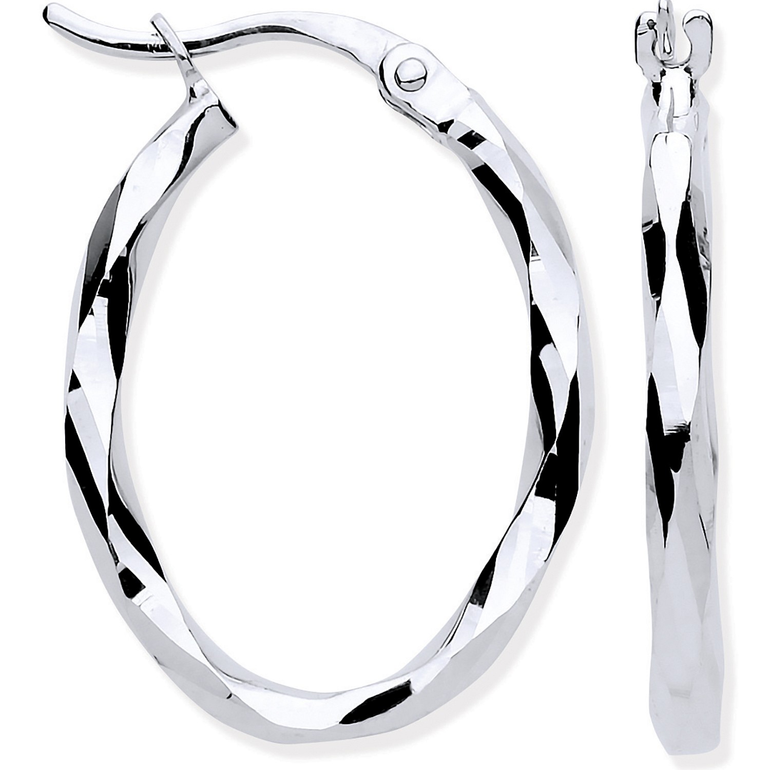/ 9ct White Gold Oval Hoop Earrings – 21mm x16mm