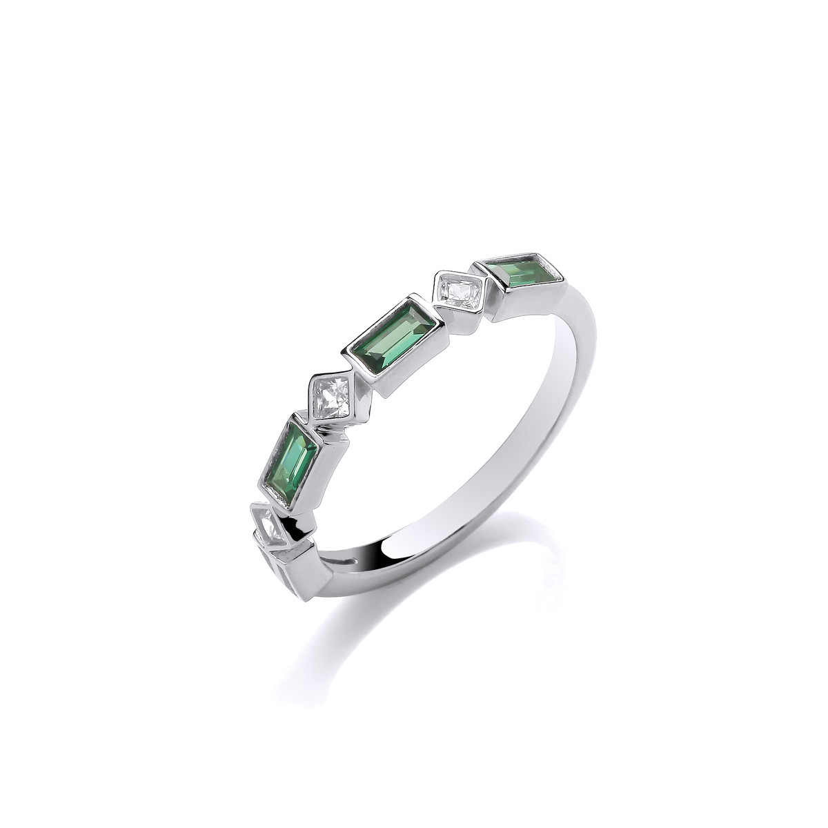 Emerald & Princess Cut Green Cubic Zirconia Band Ring