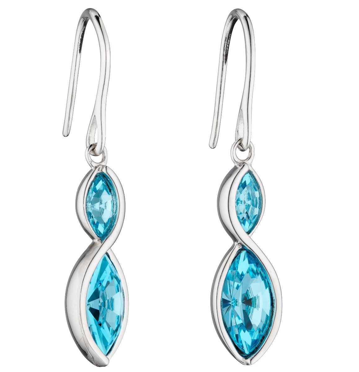 Add a pop of colour to your jewellery collection with the Aqua Navette Twist Earrings by Fiorelli Silver. Featuring twisting aqua bohemia crystal stones, set into polished sterling silver and finished with an anti-tarnish coating. Why not wear with the matching pendant and bracelet.