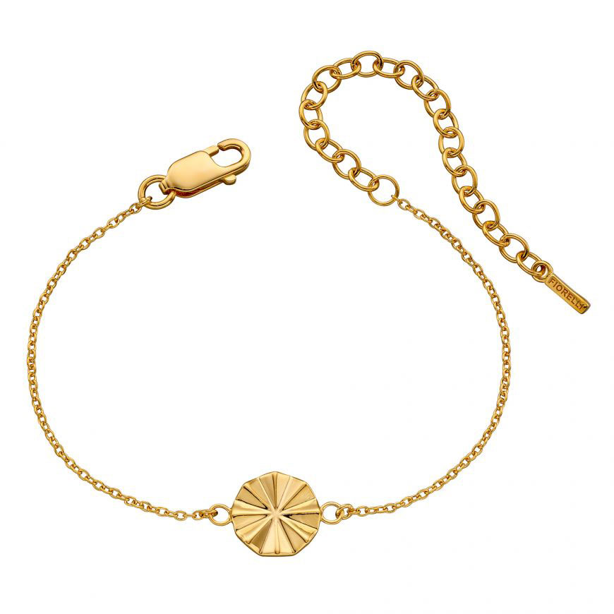 Modern and elegant this beautiful bracelet is diamond cut, as if the piece has been hand-carved and is made with yellow gold plating. Its contemporary style makes it a key piece in the new collection and for all jewellery boxes, especially when paired with the matching earrings and necklace.