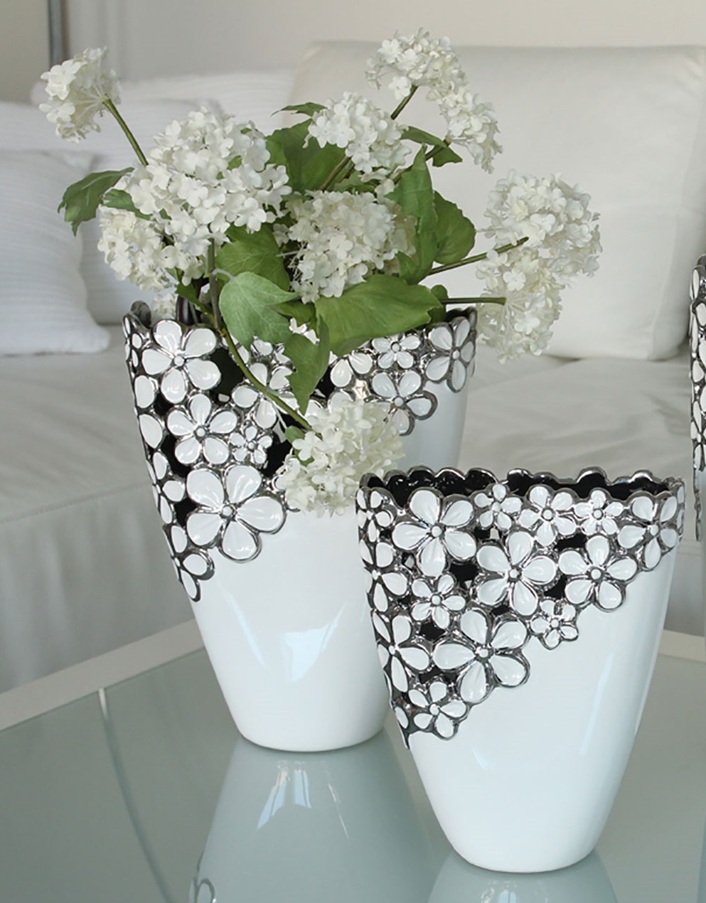 Gilde Diana Ceramic Vase. Width: 18.00 cm. Height: 21.00 cm. Depth: 8.00 cm. (One vase only)