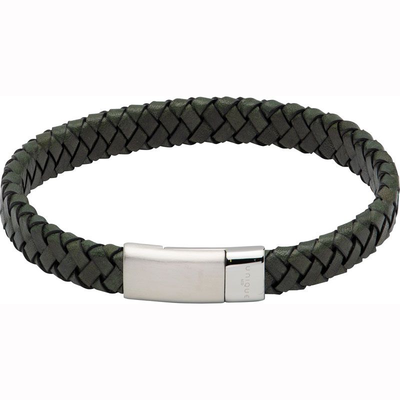 Unique for Men – Green leather bracelet with Magnetic clasp. Length: 21cm
