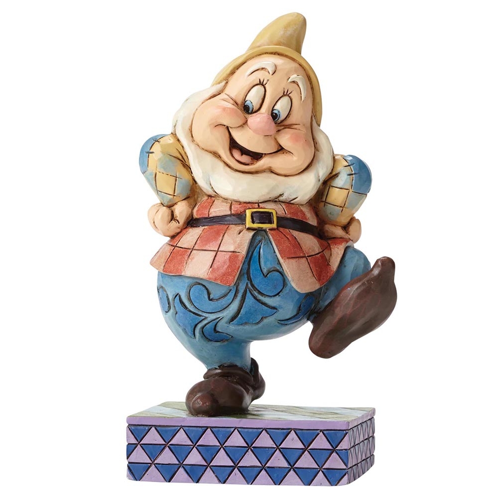 Jim Shore’s whimsical new seven Dwarfs collection features a lighthearted look at the lovable characters from Disney’s Snow White. This joyous Happy design is beautifully decorated with Jim’s signature combination of quilt patterns and rosemaling designs. The figurine is made from resin. Unique variations should be expected as this product is hand painted. Packed in a branded gift box. Not a toy or children’s product. Intended for adults only.
