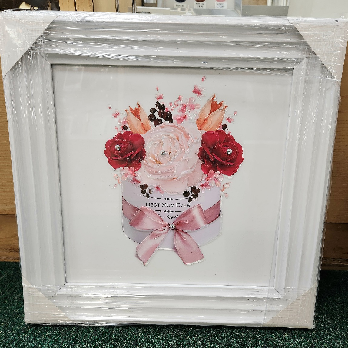 Liquid Art – Best Mum Ever Flowers in White Stepped Frame