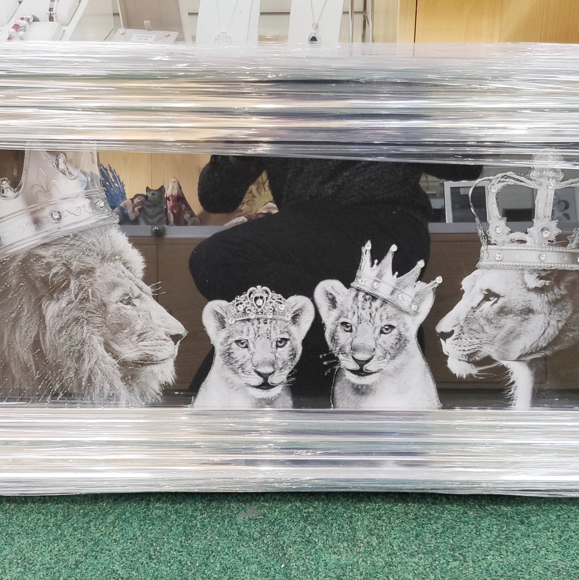 Liquid Art – Royal Lions Family in Chrome Stepped Frame