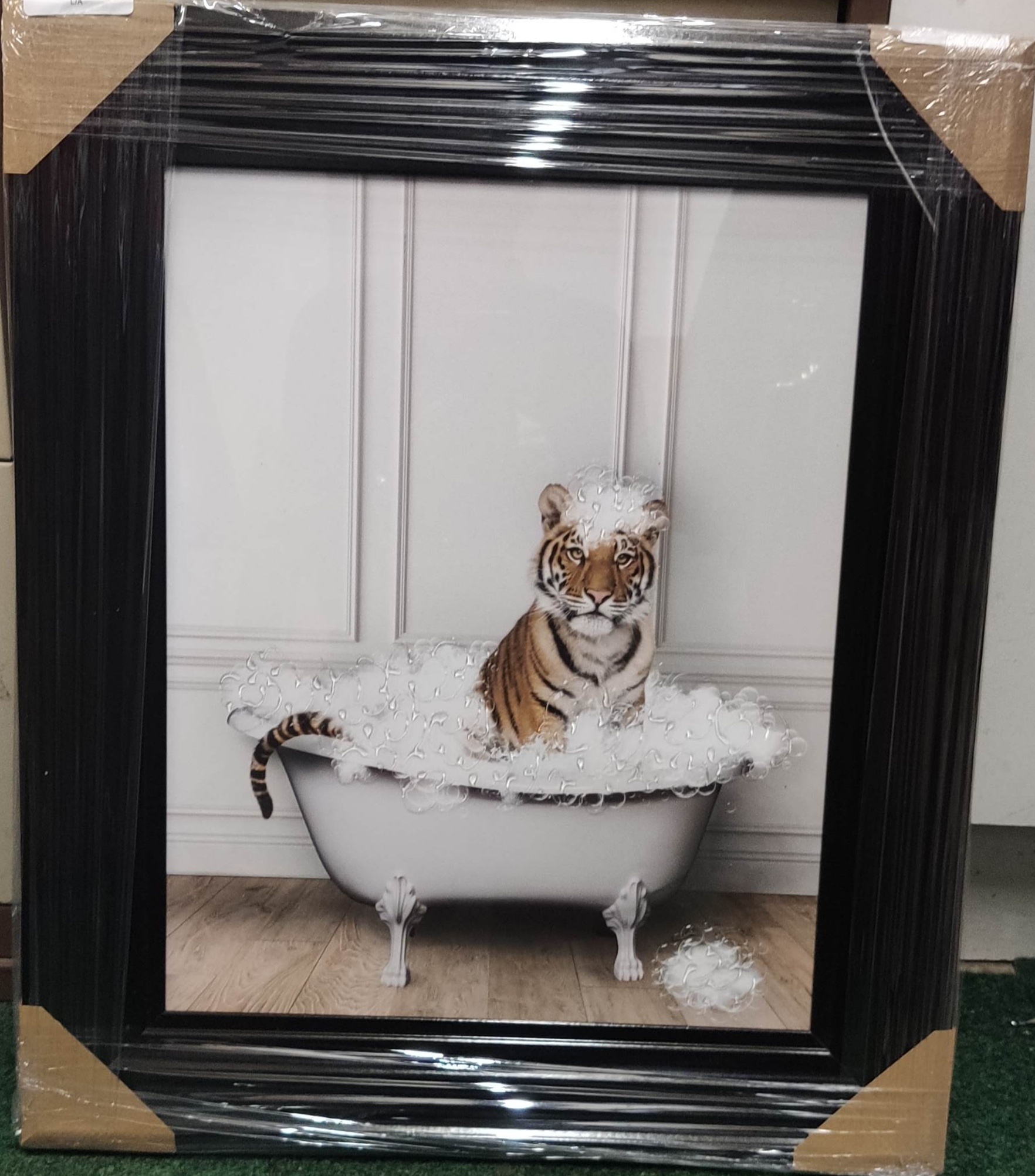 Liquid Art – Tiger Splashing In The Tub in Black Lyon Frame