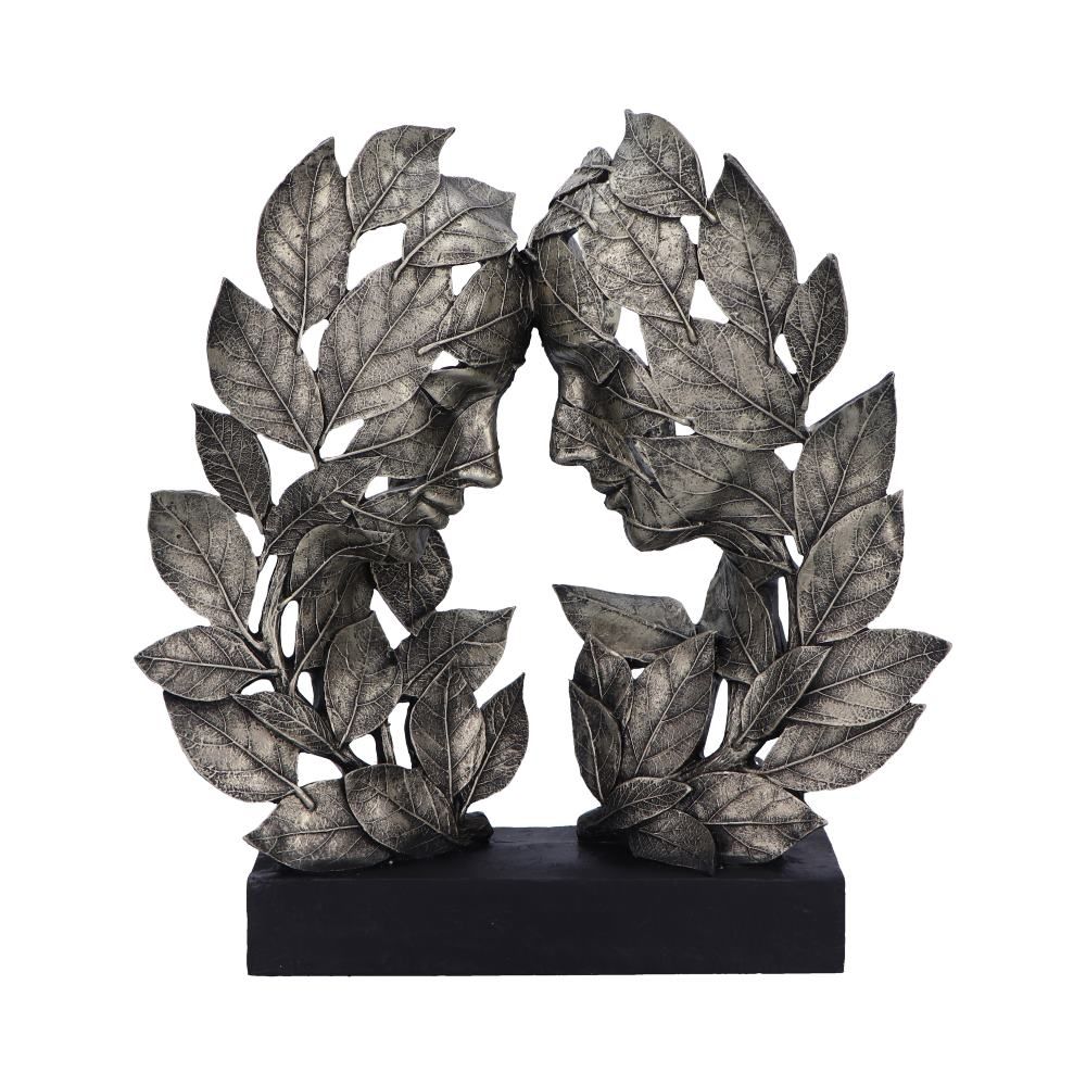 Natural Emotion – Love: Immerse yourself in the captivating portrayal of love with our resin art statue, Natural Emotion – Love, taken from Nemesis Now’s premium collection. Crafted with precision from premium resin and adorned in a silver finish, this masterful piece features delicately sculpted leaves forming the heads of a man and a woman in a profound and comfortable embrace. Positioned opposite each other, their foreheads gently touch, and eyes closed, they radiate an aura of enduring love. Meticulously crafted details, from the leaf-formed features to the nuanced expressions, celebrate the beauty of human connection. The painted black base provides a striking contrast, making this piece a poignant addition to our art collection, inviting you to embrace the harmonious blend of nature and emotion. Ideal for collectors and art enthusiasts, Natural Emotion – Love infuses your home with the timeless beauty of a love that transcends the ordinary. Discover more from Nemesis Now to enhance your collection with exceptional artistry.