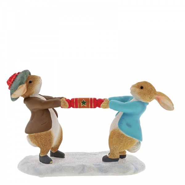 Wish someone a very Merry Christmas with this beautiful, Peter Rabbit and Benjamin Bunny Pulling a Cracker figurine. This charming figurine would make a treasured keepsake over the festive period, and would be take pride of place in your home this Christmas. Presented in a branded box. The artwork for each product is taken from the original illustrations from the Beatrix Potter stories, helping to bring the featured characters to life. Material: cast stone.