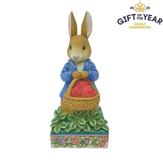 Peter Rabbit with Basket of Strawberries Figurine Made from cast stone. Packed in a branded gift box. Unique variations should be expected as this product is hand painted. Not a toy or children’s product. Intended for adults. Details: Height: 15.5cm