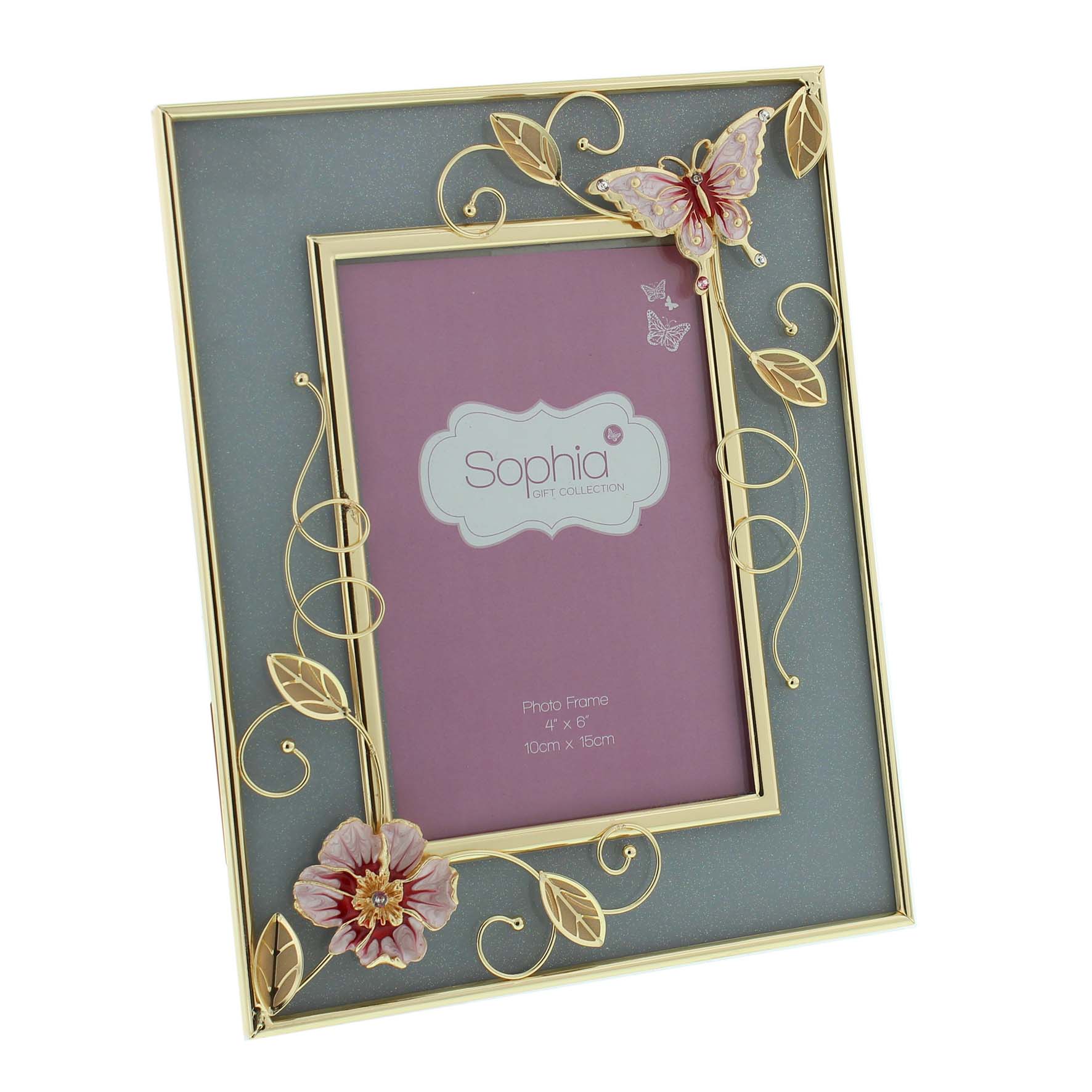 Sophia Glass & Rose Gold Wire Pink Butterfly Photo Frame 4×6