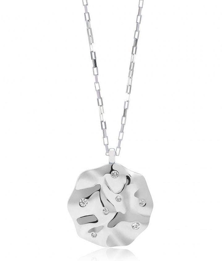 Pendant made of Rhodium plated 925 Sterling silver, polished surface with facet cut white zirconia on a 70cm chain.