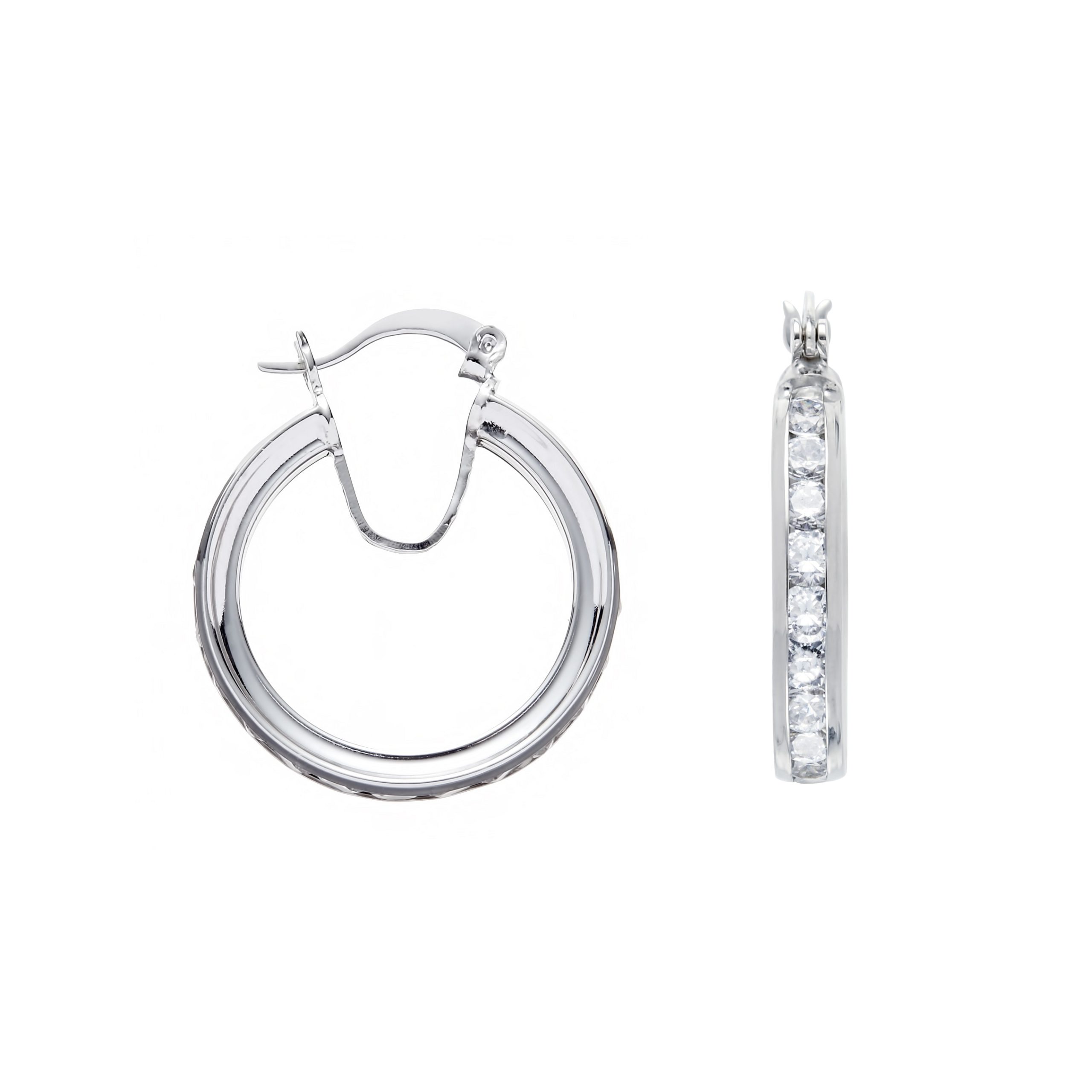 Silver Small Channel Set Cz Hoop Earrings Metal: Silver Avg. Weight: 4.2g Diameter: 25mm