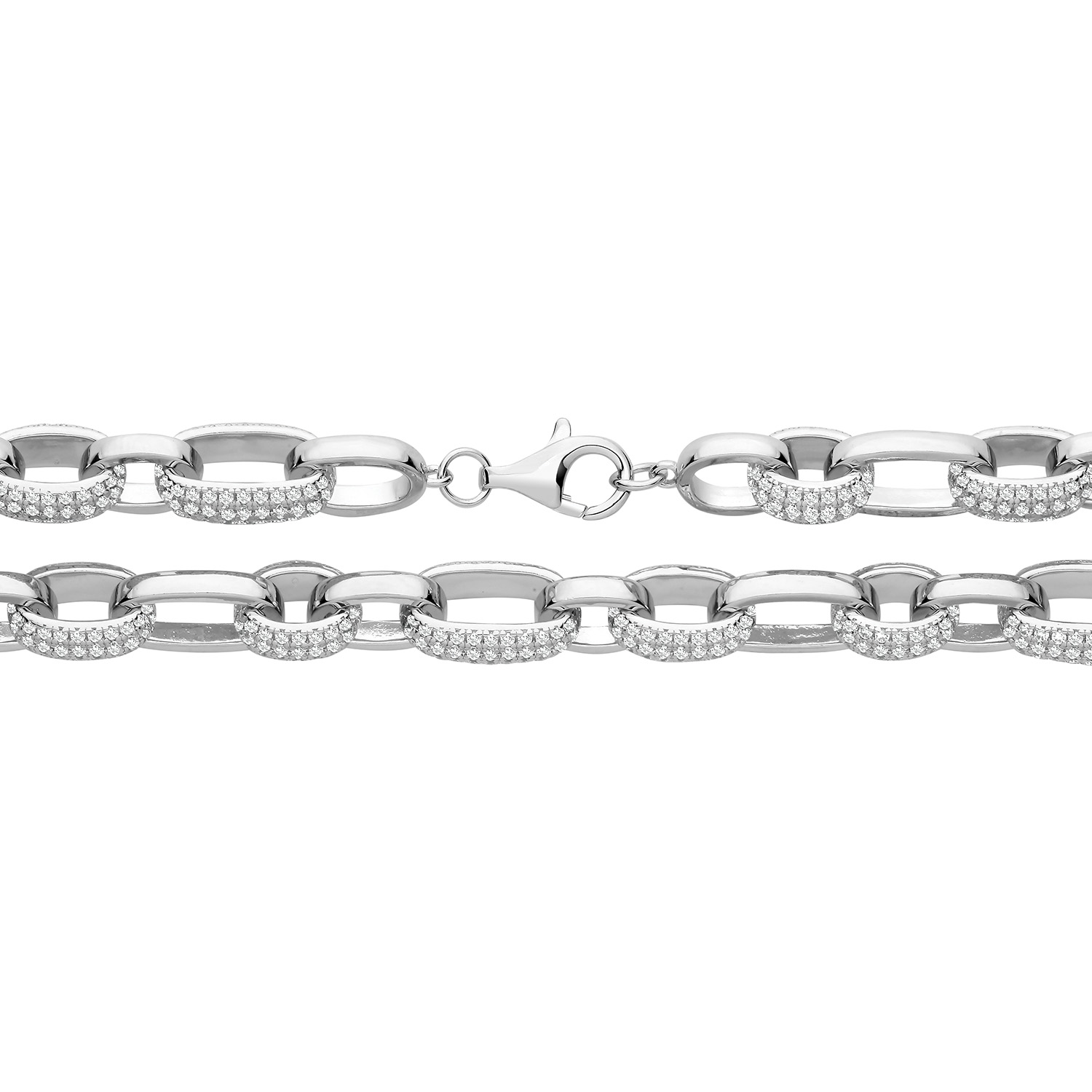 Silver CZ Rhodium Plated Figaro Belcher Bracelet -6mm