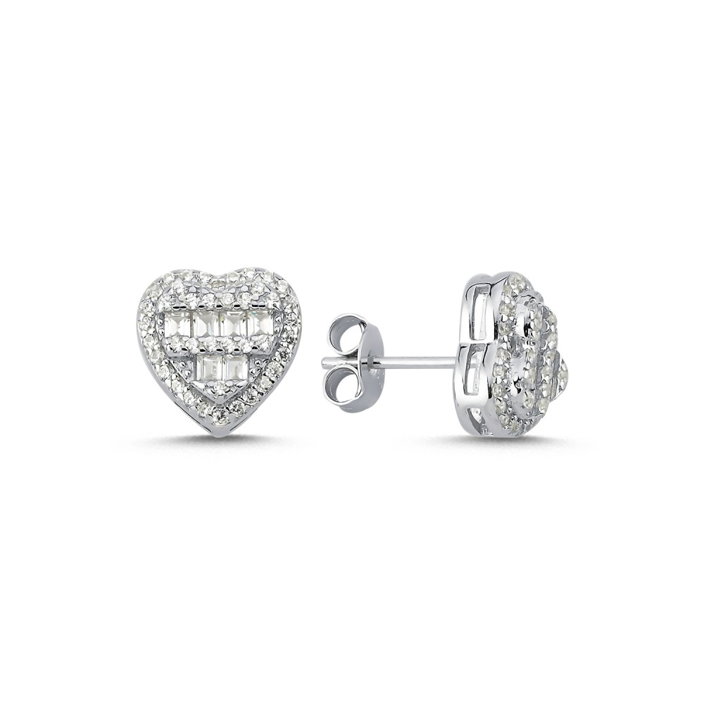 925 Silver CZ Brilliant and Baguette Cut Heart Studs