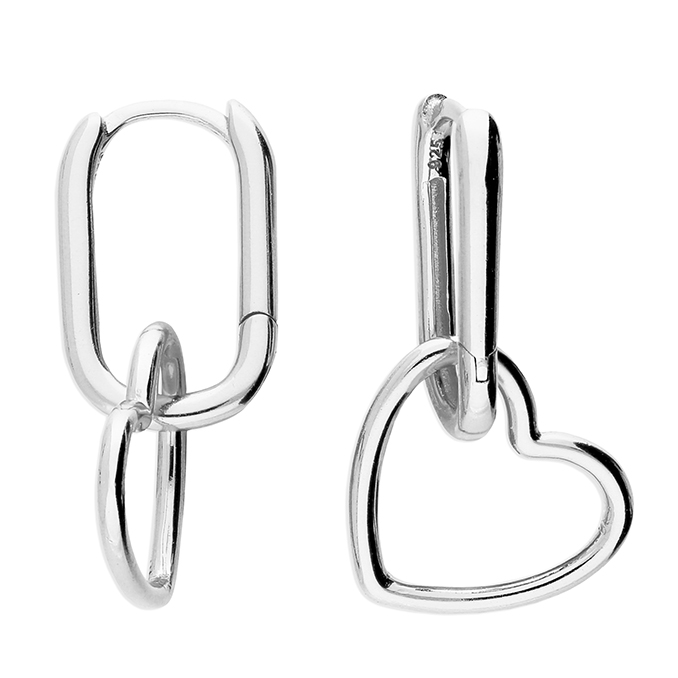 Sterling Silver open heart charm on a U-shaped hinged hoop earring