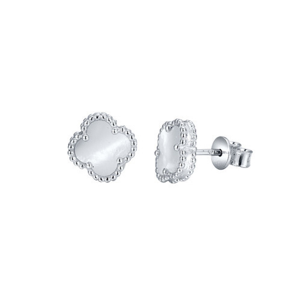 Silver Rhodium Mother of Pearl Clover Studs