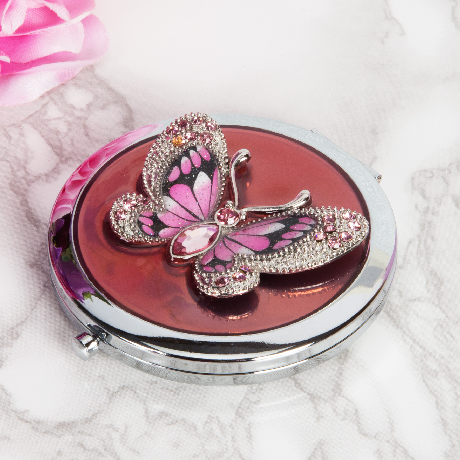 Sophia Silver & Pink Epoxy Butterfly Compact