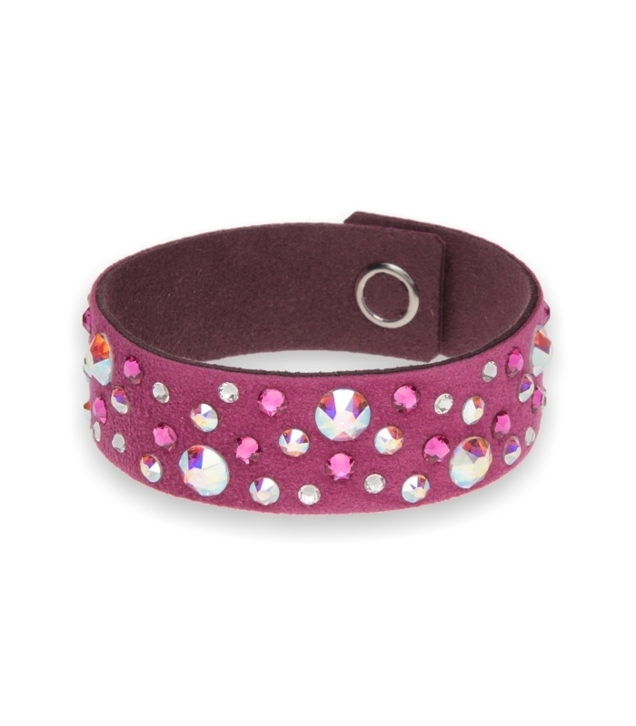 Constallation bracelet made of Alcantara and exclusive Swarovski crystals in the colours of crystals Aurore Boreale, and Fuchsia crystal.