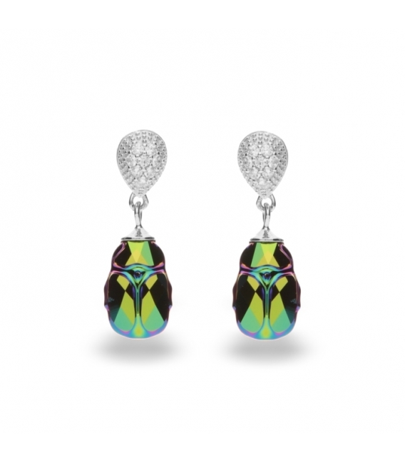 Earrings made of silver 925 and the exclusive Swarovski crystals. Scarabaeus colour Green. Length of earrings: 2.5 cm.