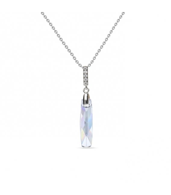 Necklace made of 925 sterling silver and exclusive Swarovski crystals in colour Aurore Boreale. Chain length: 47 cm (42 cm + 5 cm extension). Pendant length: 3.3 cm.