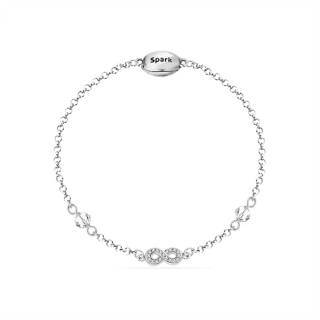 This Mix & Match link 925 Sterling Silver bracelet, size M (17 cm) comes from the brand Spark and belongs to the Mix & Match collection. The link bracelet is provided with an oval-shaped Swarovski crystal set clasp with the name of the brand on the back and adorned with Swarovki Crystals. Spark guarantees the most beautiful jewellery that uses stunning Swarovski crystals.