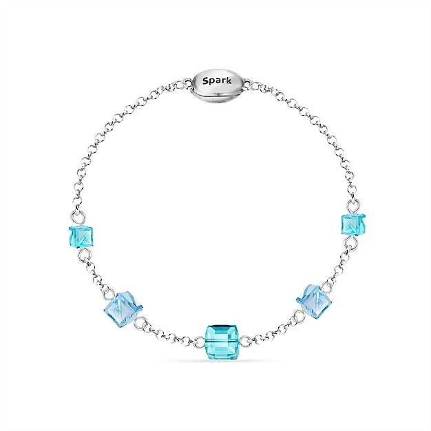 This Mix & Match link 925 Sterling Silver bracelet, size M (17 cm) comes from the brand Spark and belongs to the Mix & Match collection. The link bracelet is provided with an oval-shaped Swarovski crystal set clasp with the name of the brand on the back and adorned with Swarovki Cube Crystals. Spark guarantees the most beautiful jewellery that uses stunning Swarovski crystals.