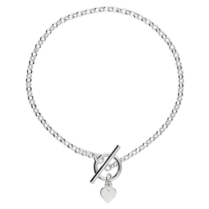 19 cm T-bar bracelet with mini silver heart.