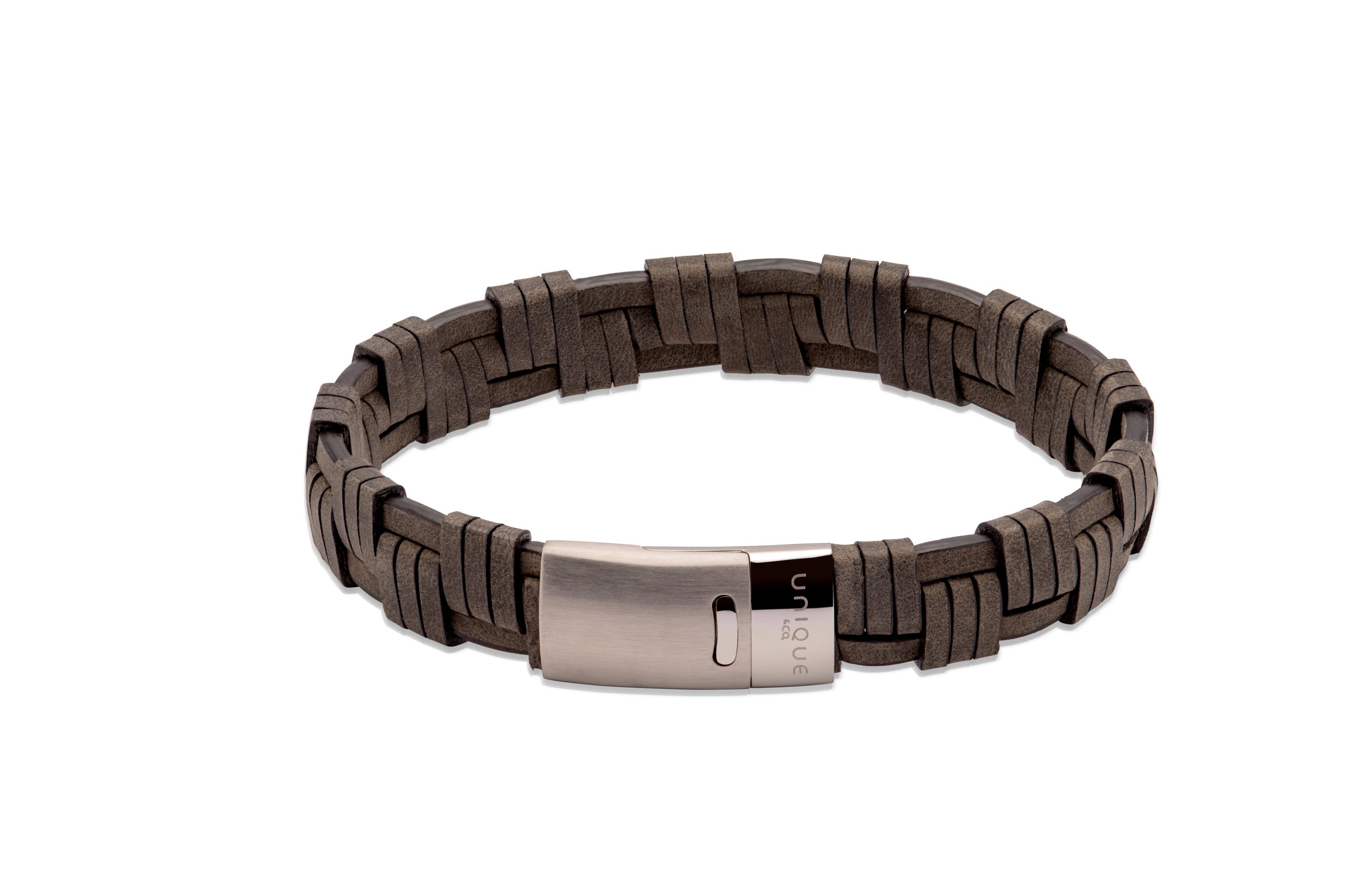 Gents Antique Black Leather Bracelet – Black Edge with a Magnetic Matte Steel Clasp