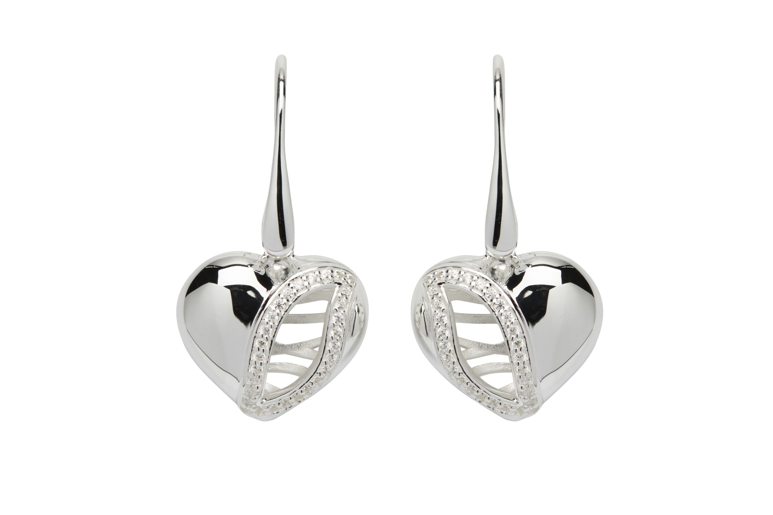 Beautiful & sophisticated Sterling Silver Cubic Zirconia heart drop earrings