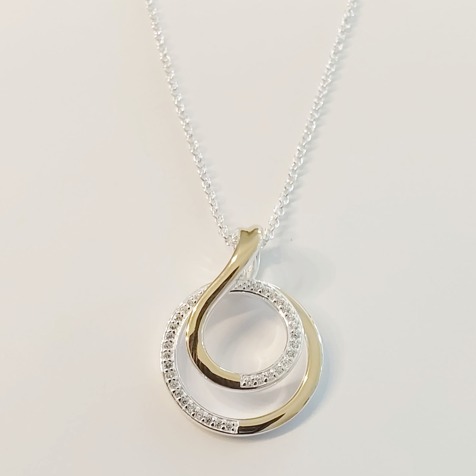 This beautiful sterling silver and yellow gold plated Cubic Zirconia pendant and chain will make a wonderful addition to any jewellery collection.