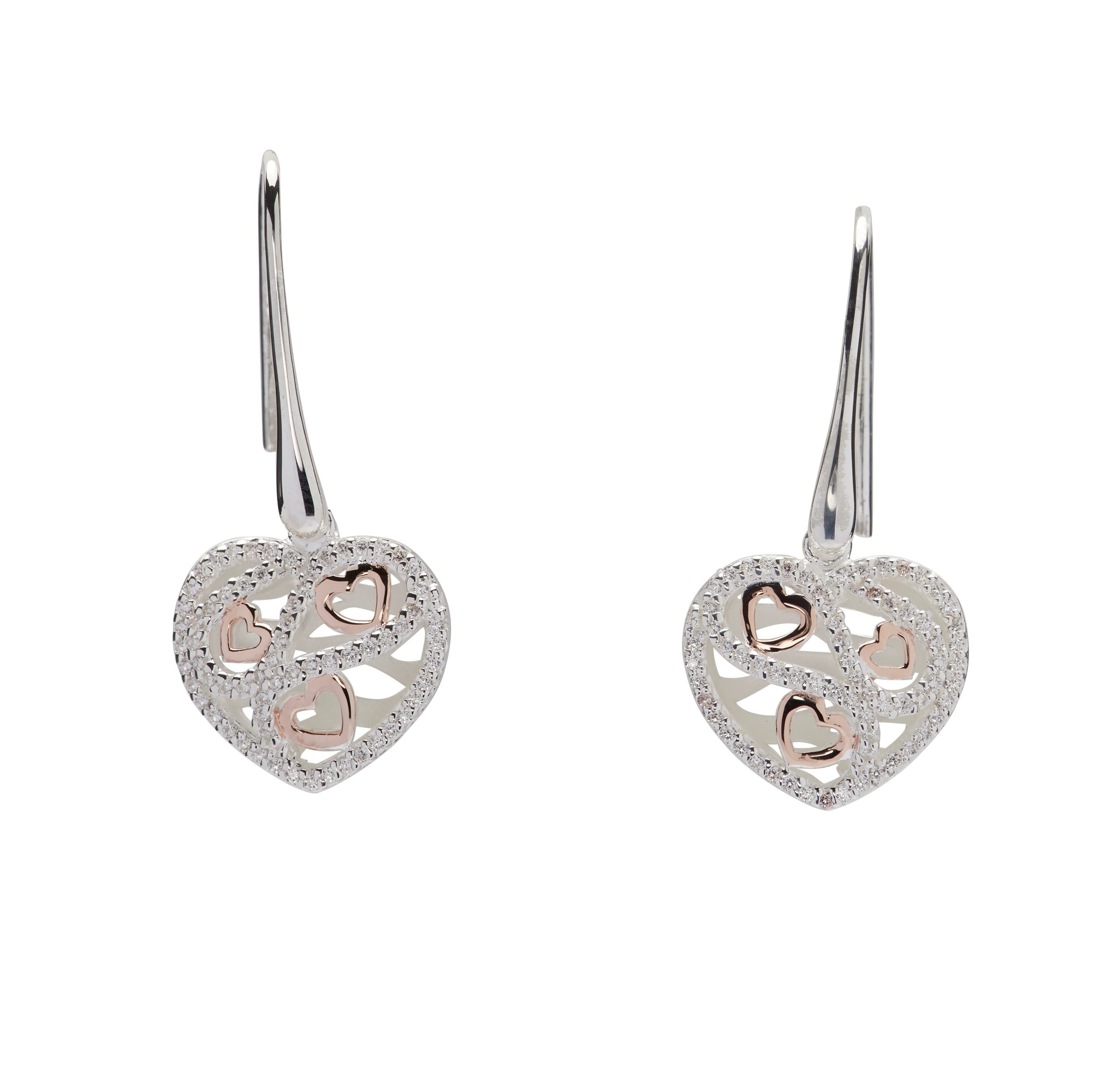 Sterling silver and rose gold plated on silver Cubic Zirconia heart stud earrings