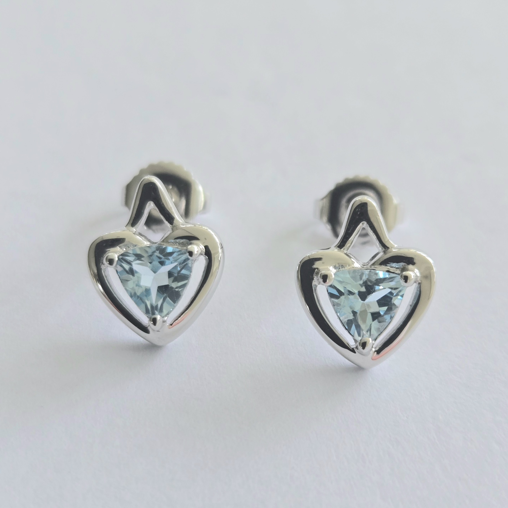 Unique for Women – Sterling Silver Rhodium Plated Real Blue Topaz Heart Stud Earrings.