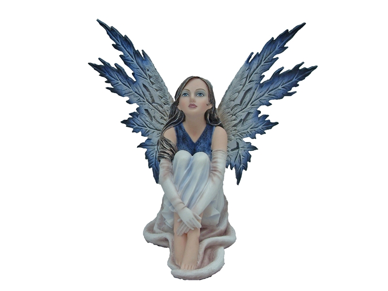Beautifully hand crafted resin sitting fairy with knees up and hands on ankles