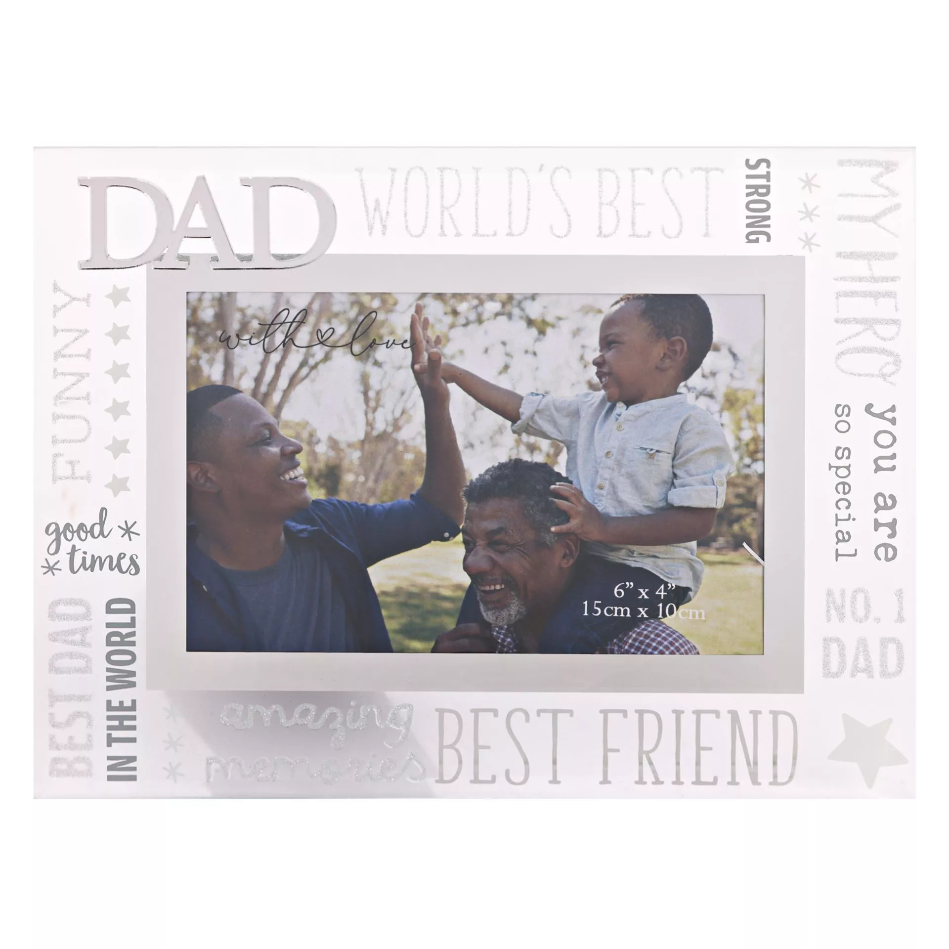 Capture a cherished moment with our ‘With Love Glass Frame With 3D – Dad’. This delightful keepsake presents a heartwarming 3D image of a father and son sharing a joyful outdoor experience, accentuating the special bond between them.